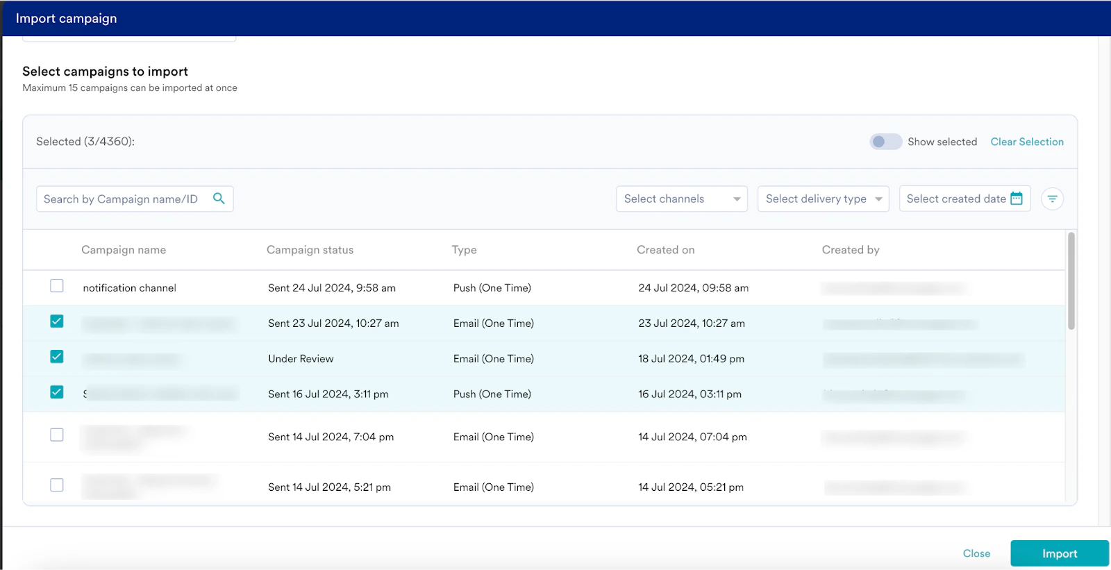 You can migrate campaigns in any status other than Draft. You can select a maximum of 15 campaigns for a single import.