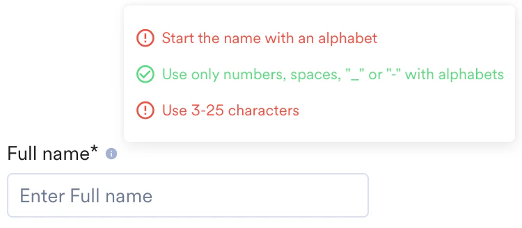 name | Yes | String | Only alphanumeric [0-9, a to z, A to Z], and_(Underscore),-(hyphen) and spaces | It is the label for your input variable. |