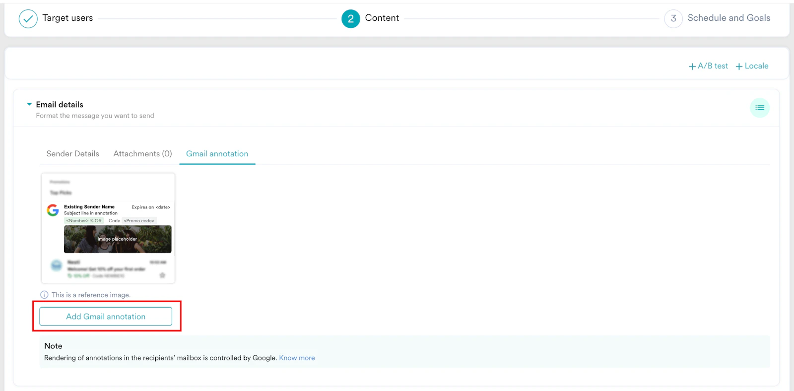- In the Gmail annotation tab, click Add Gmail annotation.