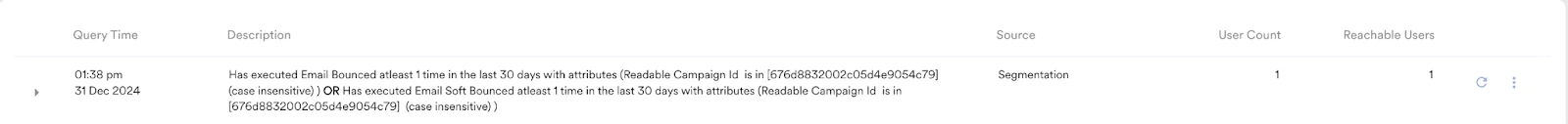 - As a result, hard or soft bounce emails associated with Readable Campaign Id in the past 30 days will be identified as true.