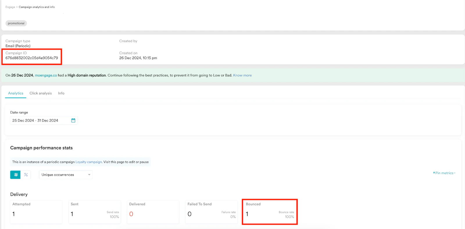 Perform the following steps:- Go to the desired Email campaign to identify users who have encountered bounced emails.