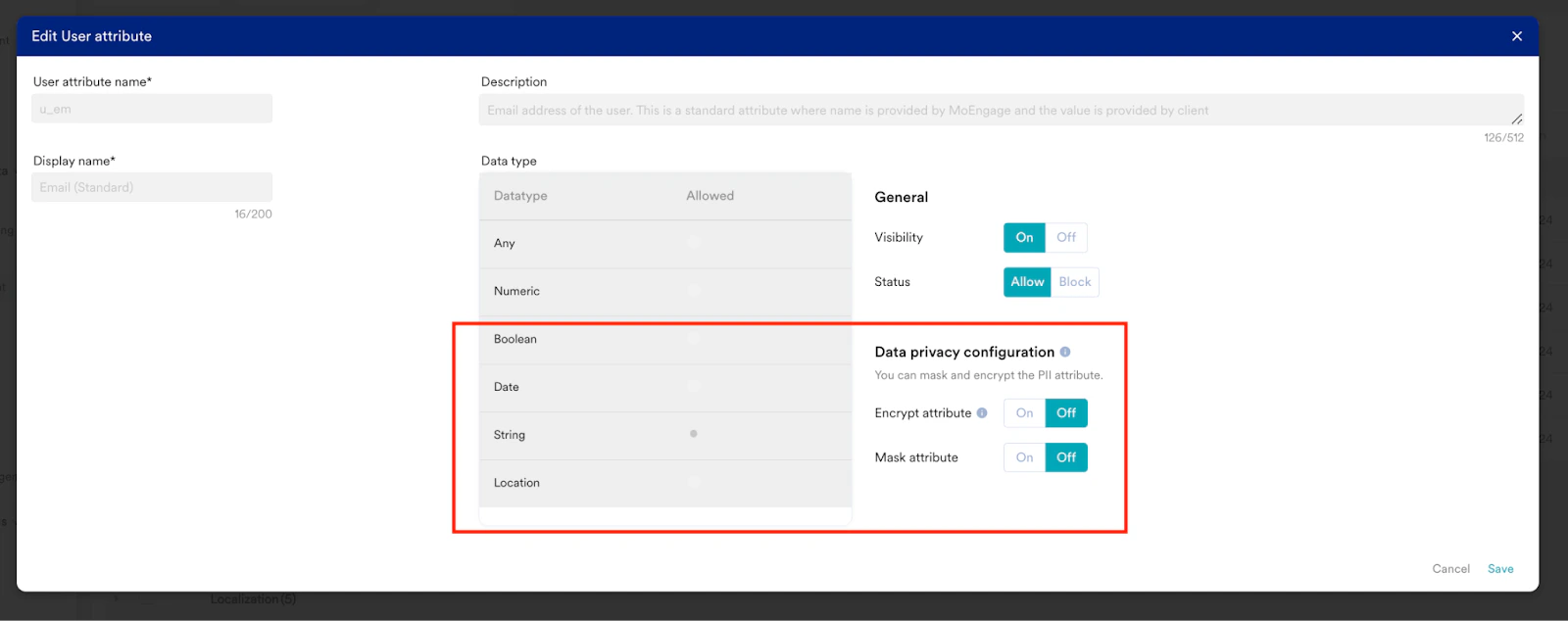 • Enabling the PII Encryption feature (Encrypt attribute toggle) will automatically encrypt future email data, preventing this issue.