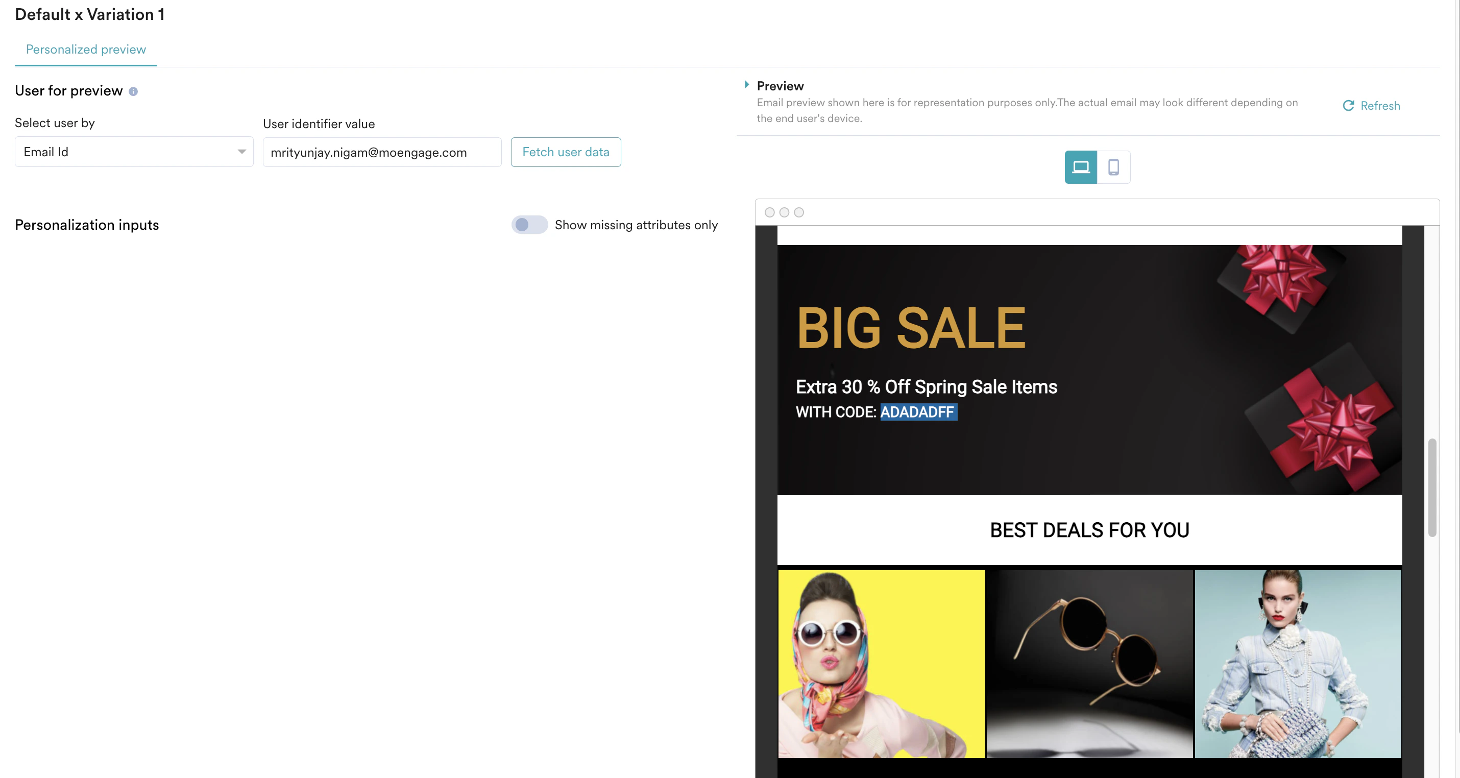 - To ensure that coupons are not wasted during preview and test, the preview section and test campaign lock only one of the coupons from the coupon list for all test users.