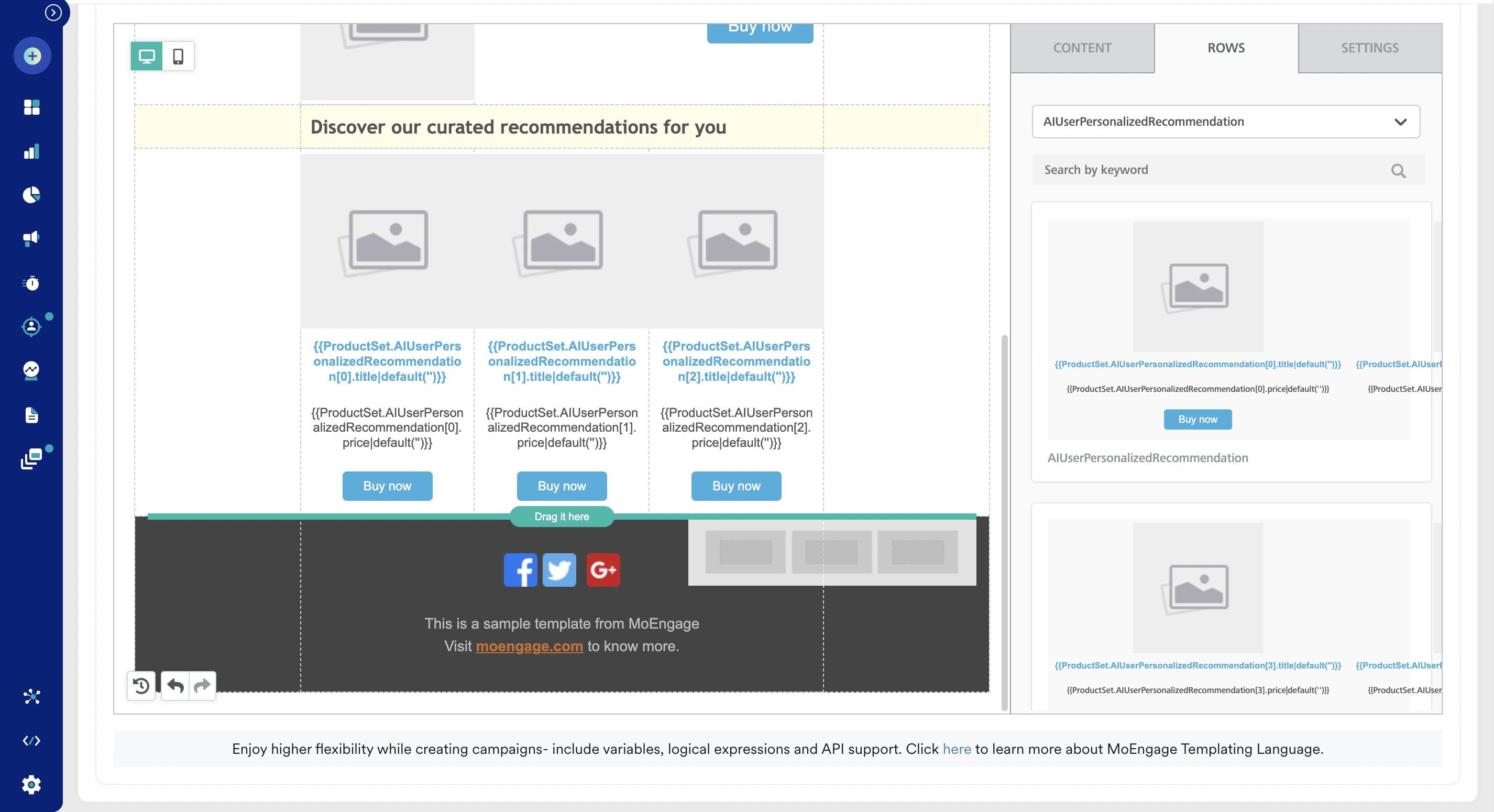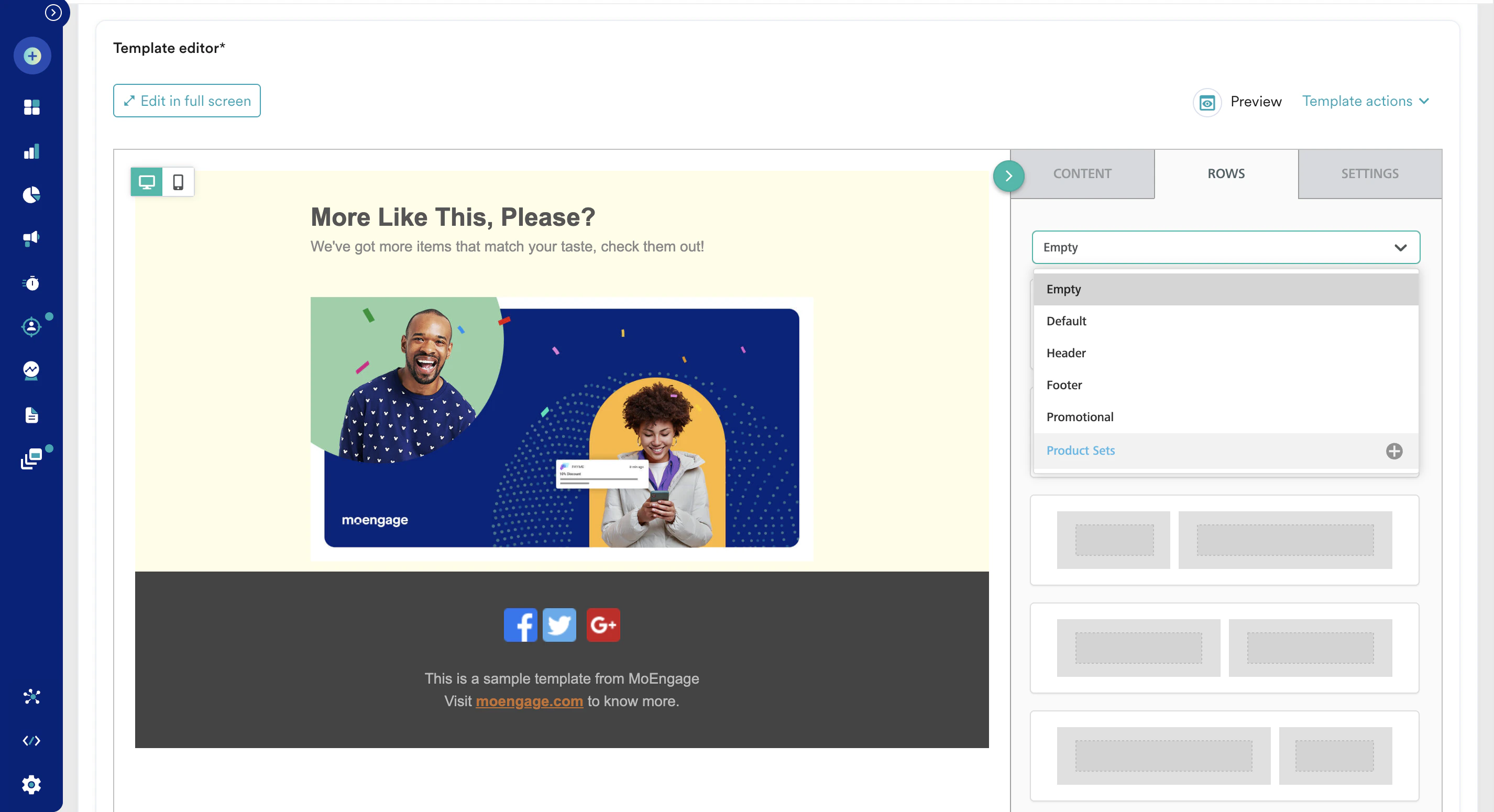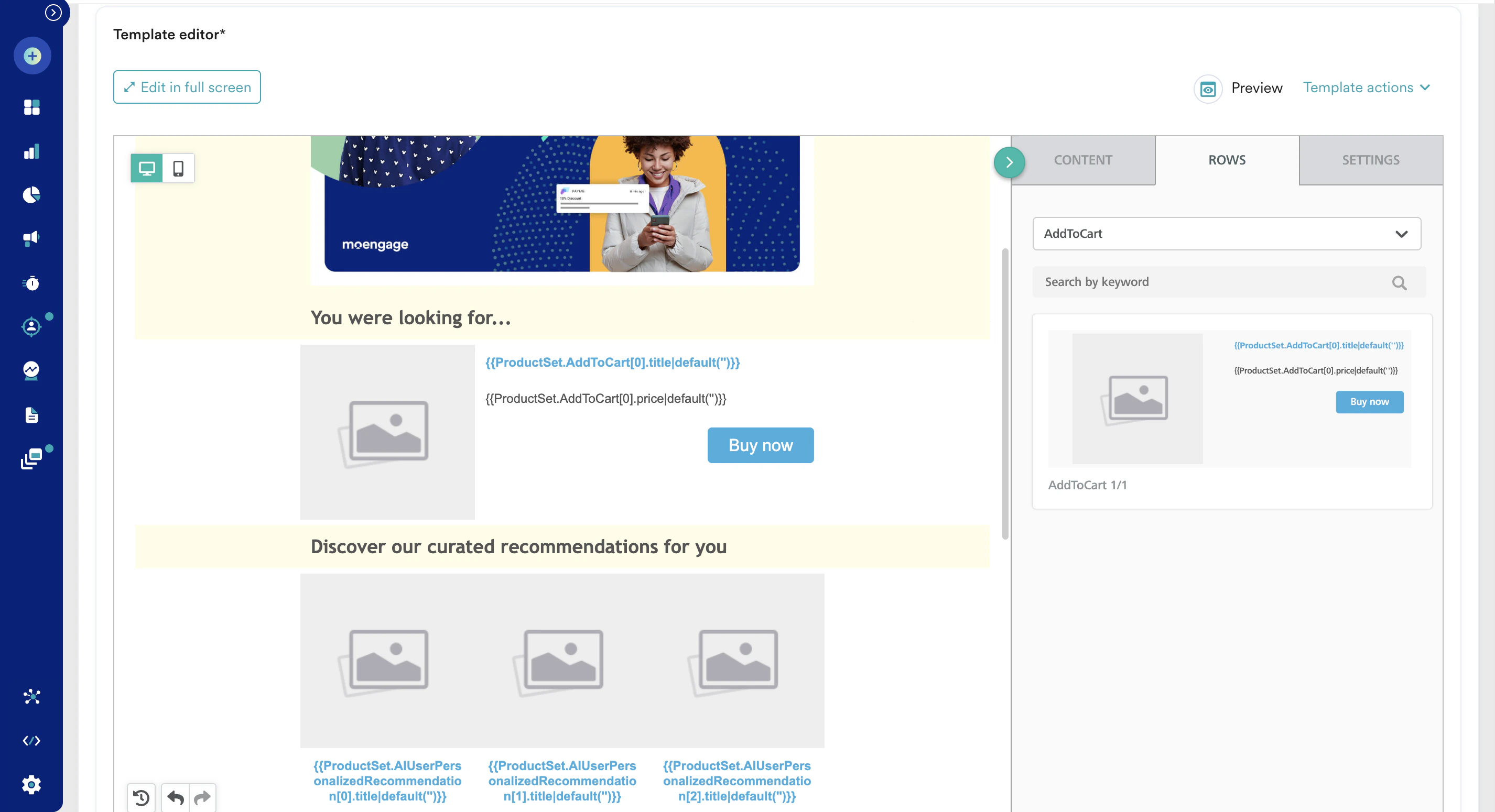 8. Customize the template by adding your branding elements, images, and text. You can also personalize the email content using dynamic variables. Learn How to use the Template editor.