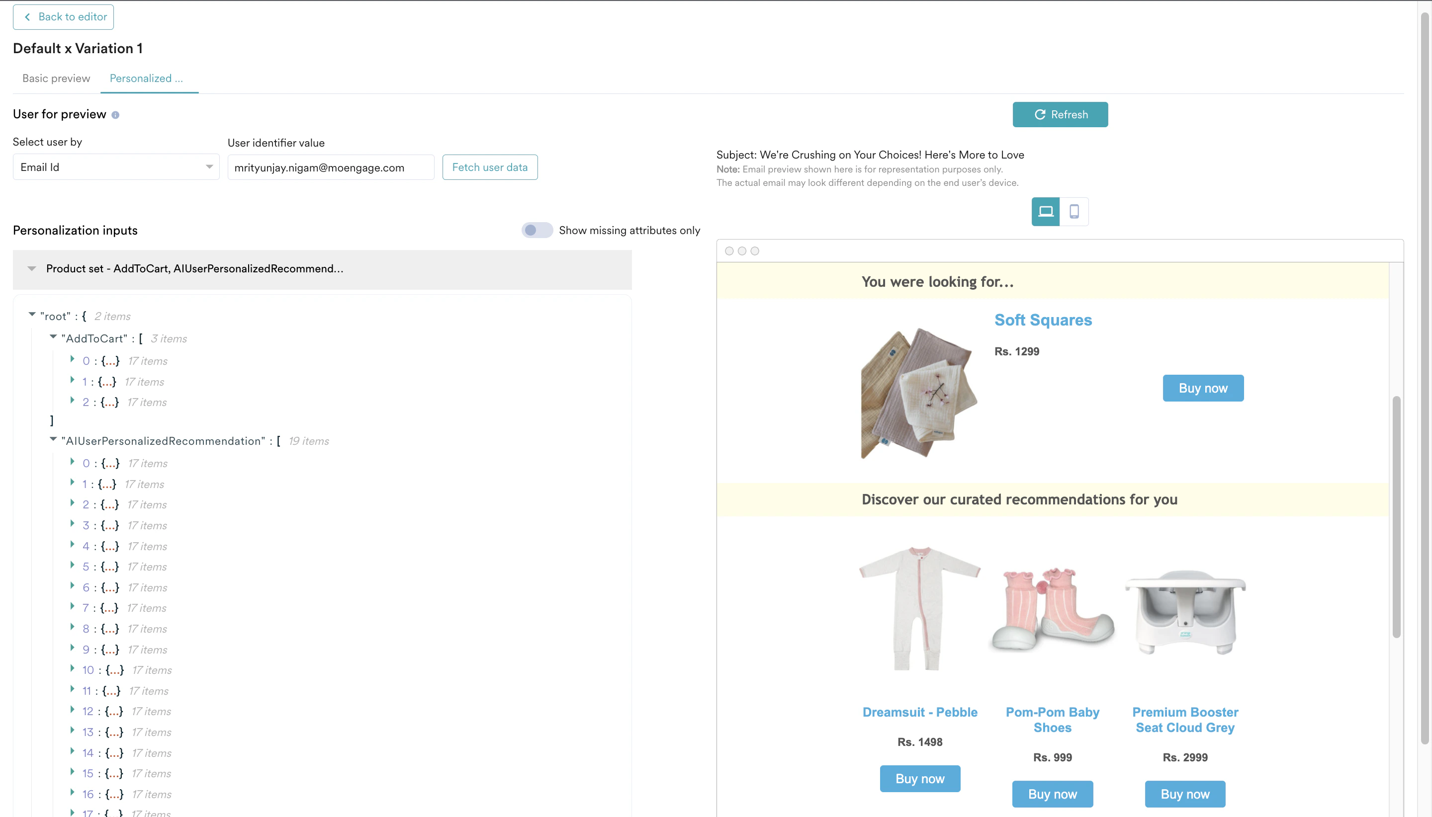 Ensure that you have created the desired recommendations. You can use only active recommendations for campaign personalization. Learn how to create and manage recommendations.