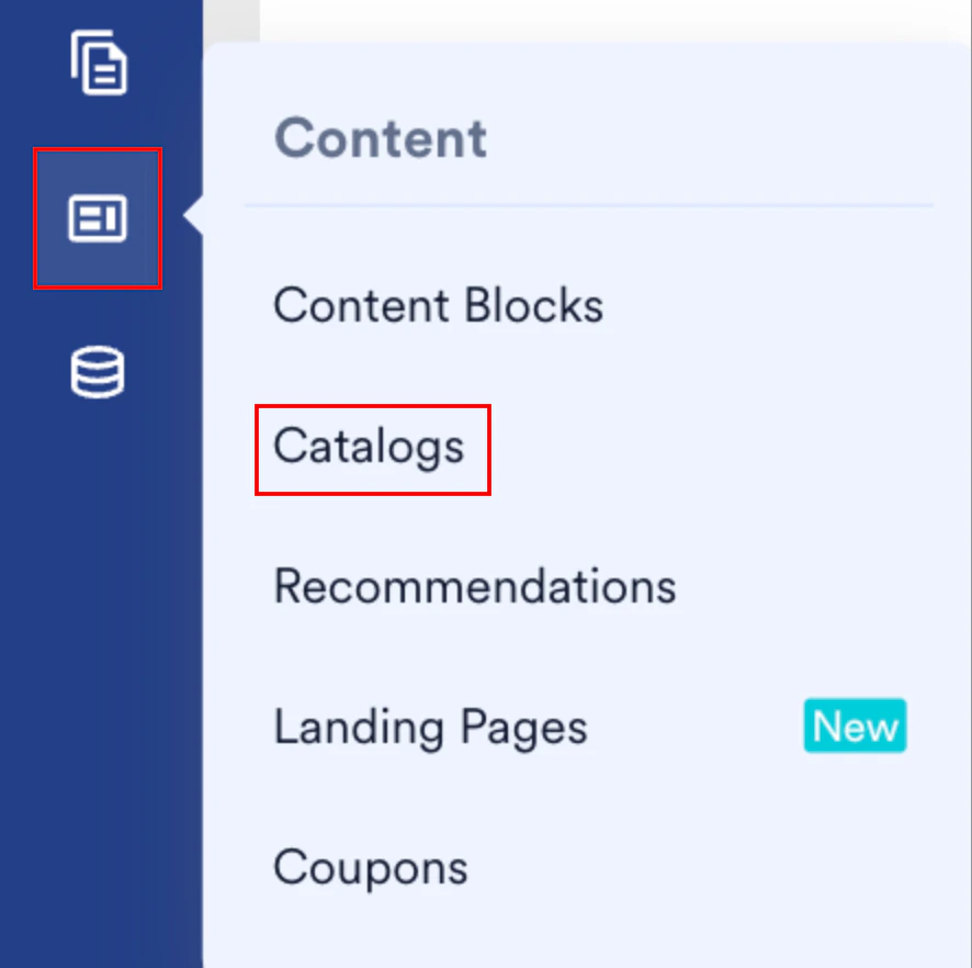 To add feeds to catalogs, follow these steps:- On the sidebar menu in MoEngage, hover over the Content menu item