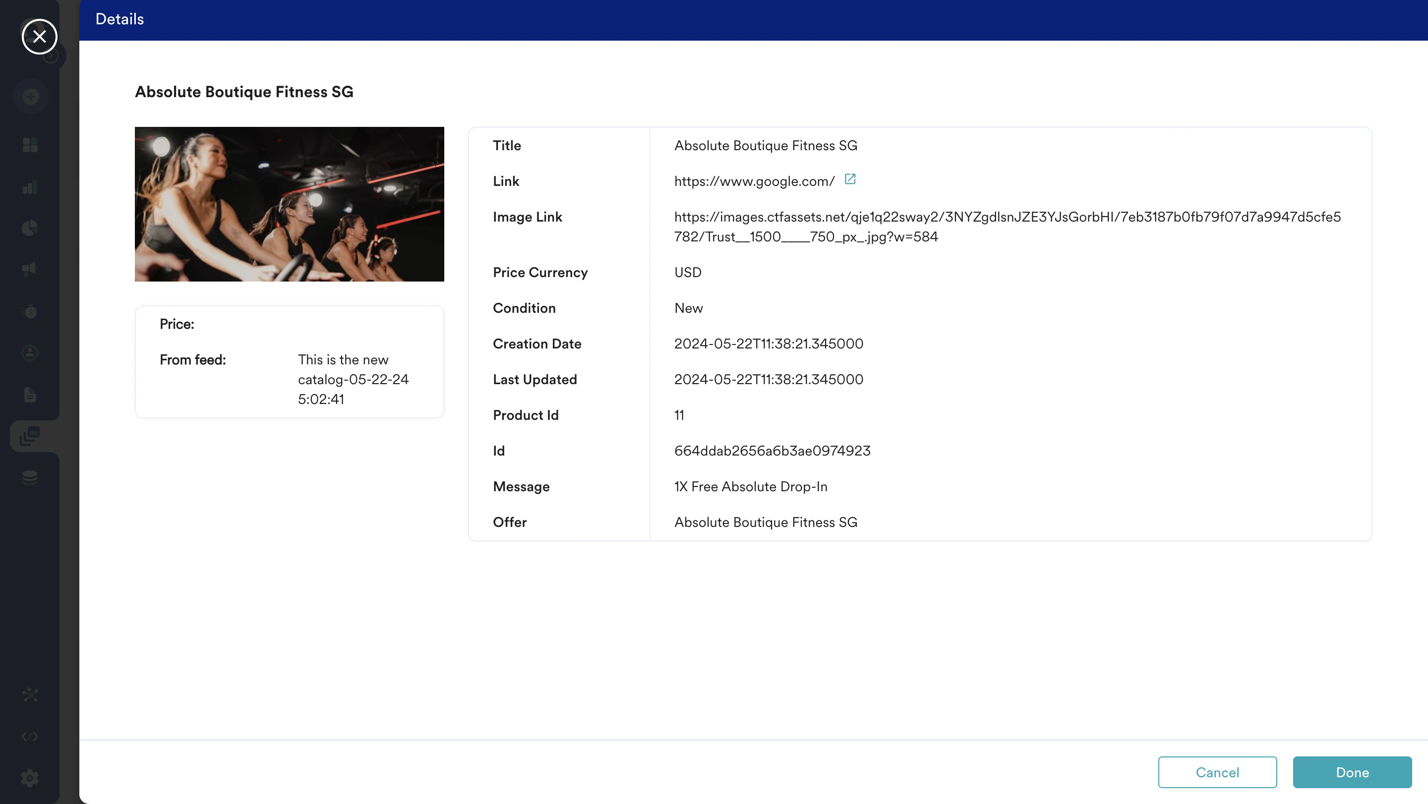 Feeds provide detailed attributes of the items, such as ID, title, link, and image link. The following are the feed options:- Manual Upload: The manual upload option in the Catalog feature allows marketers to upload a CSV file containing item listings. This method is suitable for situations where marketers want to perform a one-time upload of their item information.