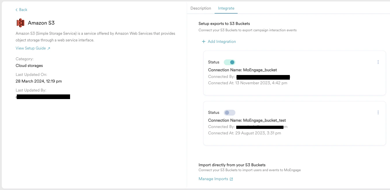 1. On your MoEngage Dashboard go to App Marketplace > Amazon S3 > Integrate.