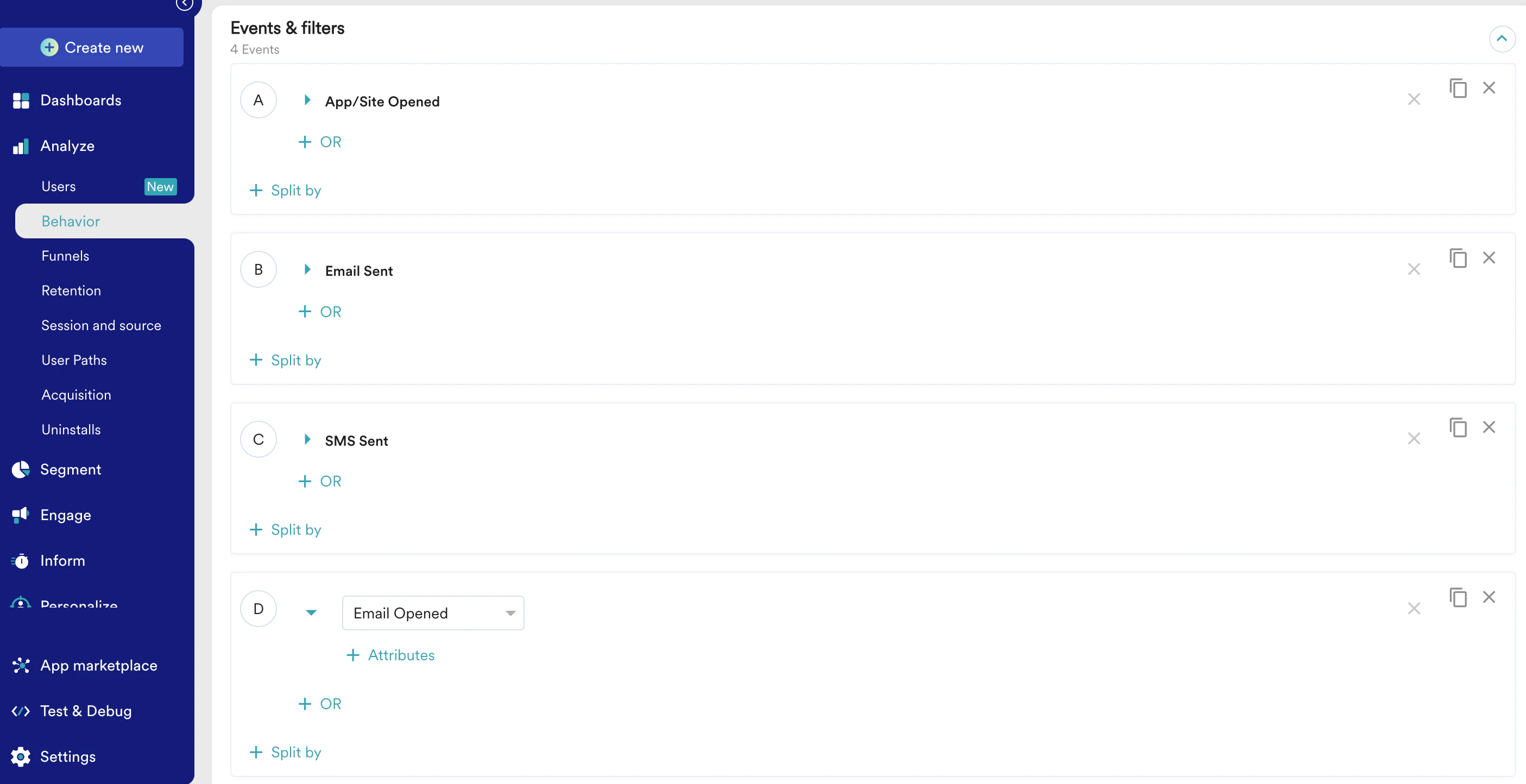 1. On your MoEngage Dashboard go to Analyze > Behavior.