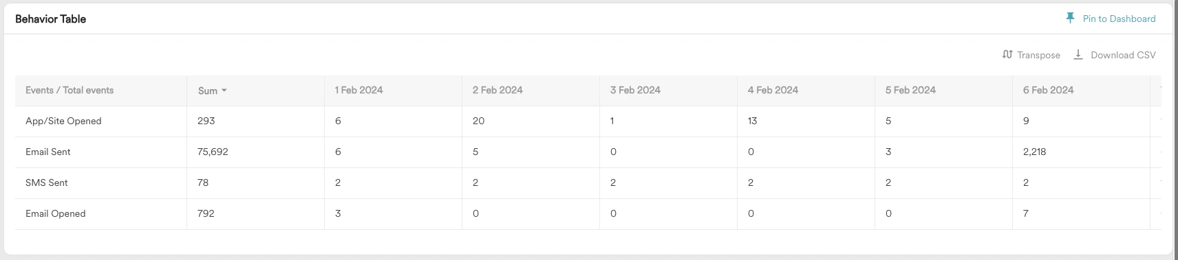 With MoEngage Analytics, you can obtain a comprehensive breakdown of the total count for each event. As and when MoEngage receives an event, it is forwarded to your destination without any modifications. This ensures that the volume of events displayed on the MoEngage Dashboard accurately corresponds to the volume of events received by you.