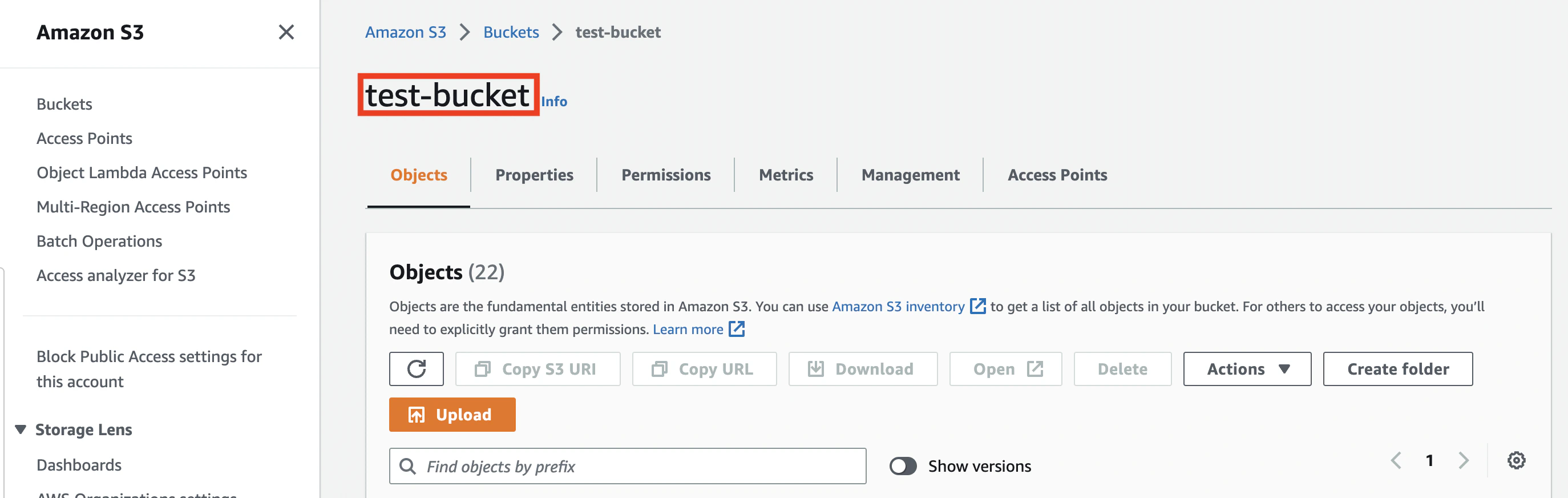 In your AWS console, go to S3 and select your bucket from the list. The bucket’s name is mentioned at the top.