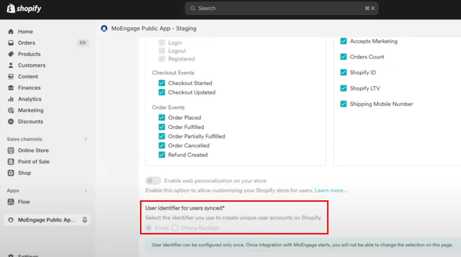 MoEngage executes a one-time script to merge the existing users in the workspace based on the identifers you have activated as well as the merge settings selected in your workspace.When Identifiers are activated, a support ticket is raised where the feature enablement is tracked. The feature is enabled from the backend to activate the identifiers and start merging existing users based on the set identifiers. A report is generated once the feature is enabled, which will indicate every user merge action that is executed. This can be provided by the support team upon request.This section describes how you can use MoEngage Identity Resolution in Shopify.Scenario 1: Email-id as the Identifier