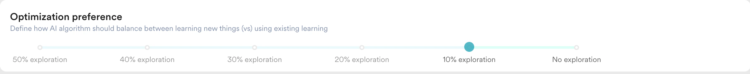 Optimization Preference: Adjust the slider to define how the AI balances learning versus performance: