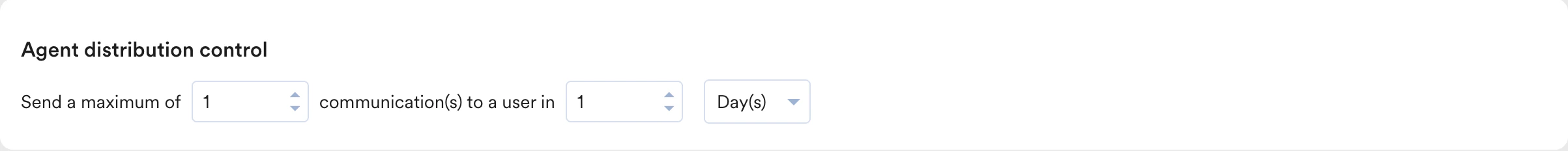 - Agent Distribution Control: Set frequency guardrails to prevent over-messaging (for example, “Send a maximum of 1 communication in 1 Day”).