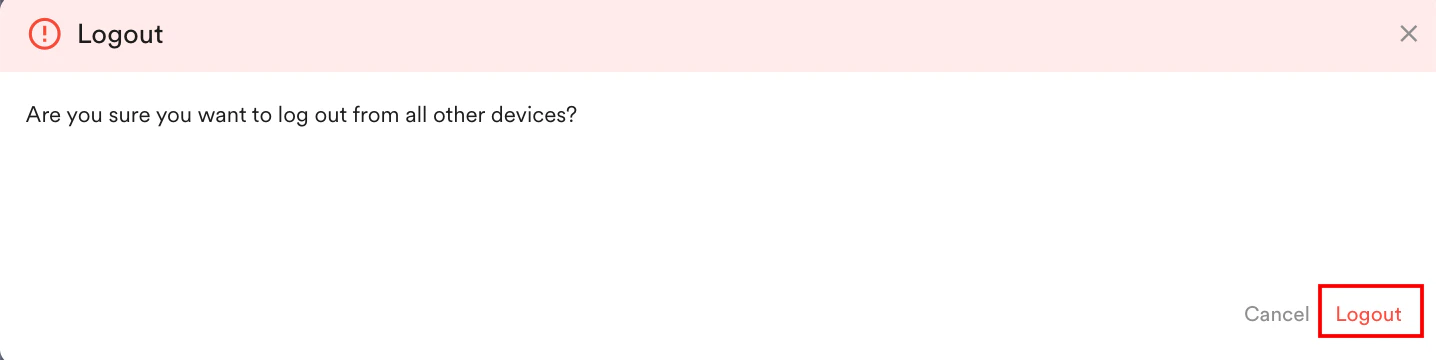 The Logout pop-up window will appear, prompting you to confirm. - Click Logout.