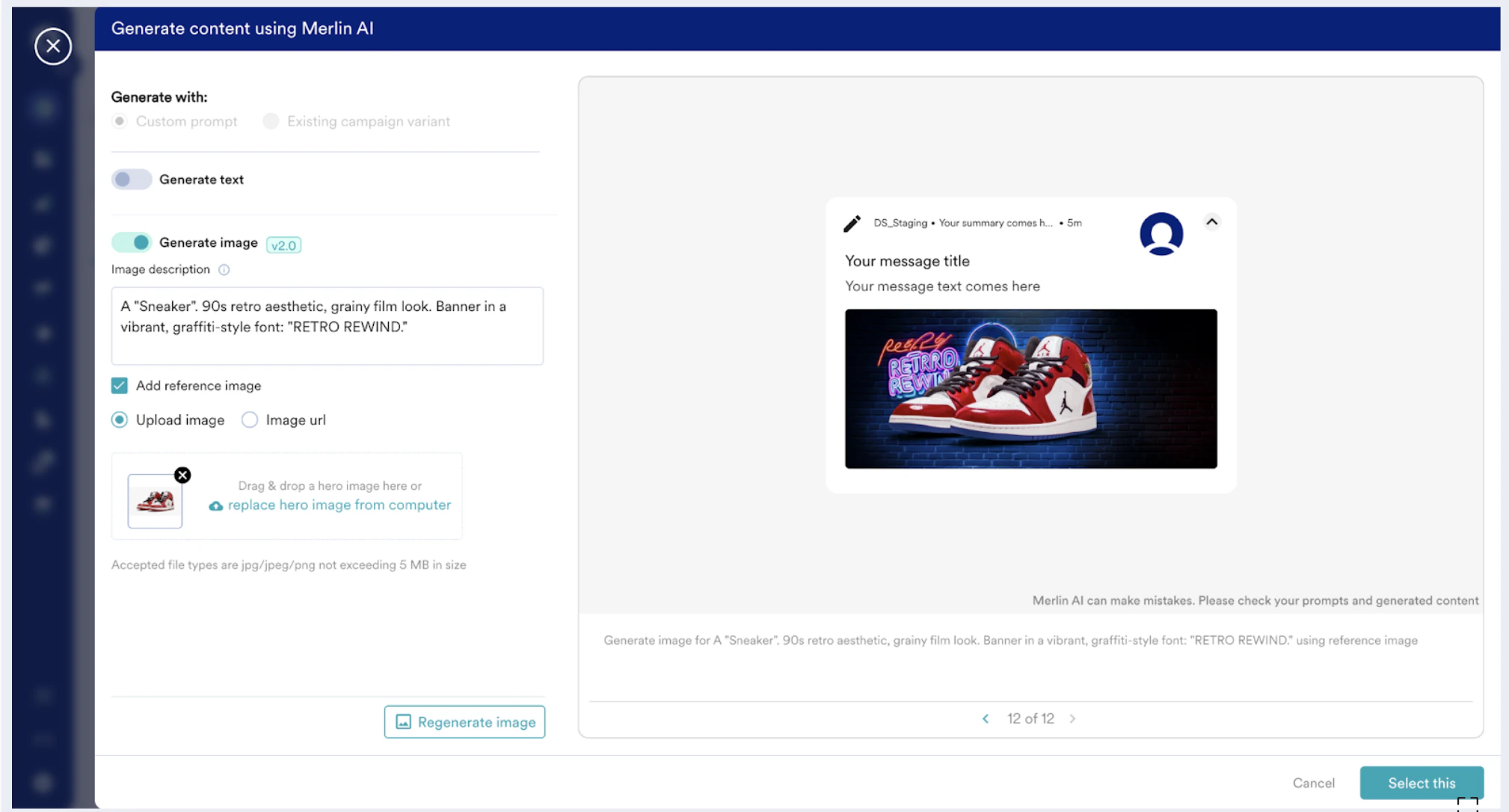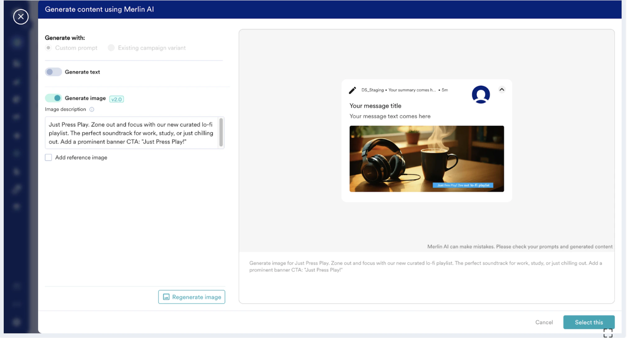 • You can create up to 20 images in a campaign using Merlin AI.