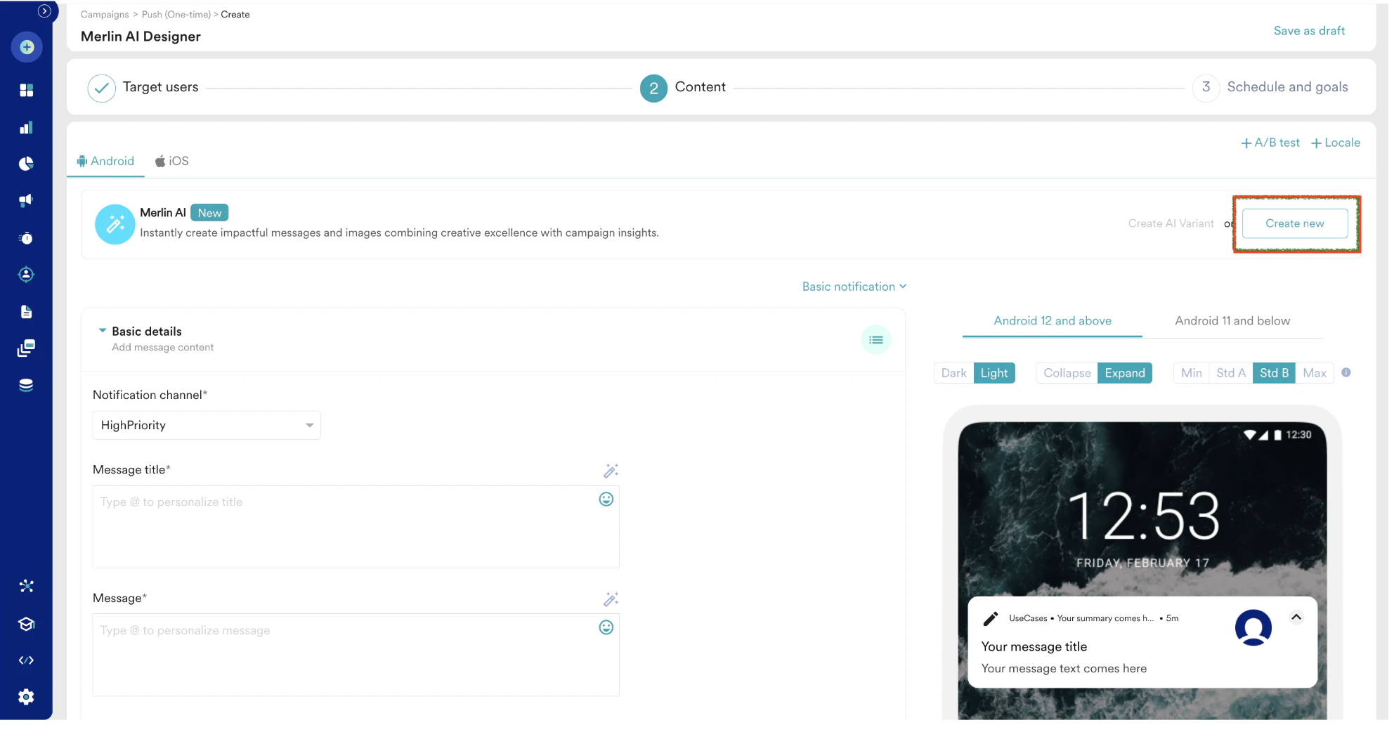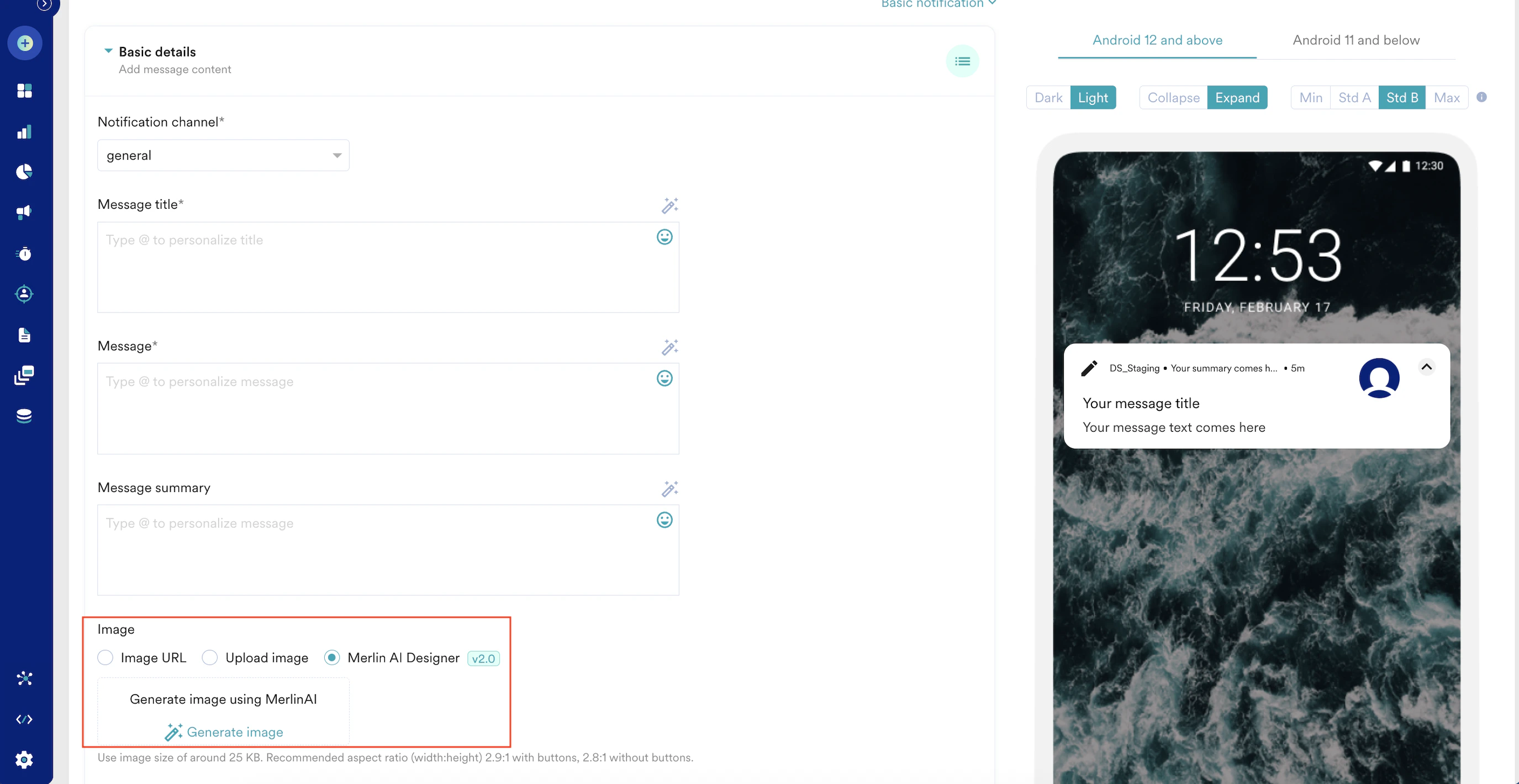 Merlin AI Designer is currently supported in Push campaigns for Basic and Stylized Basic templates.