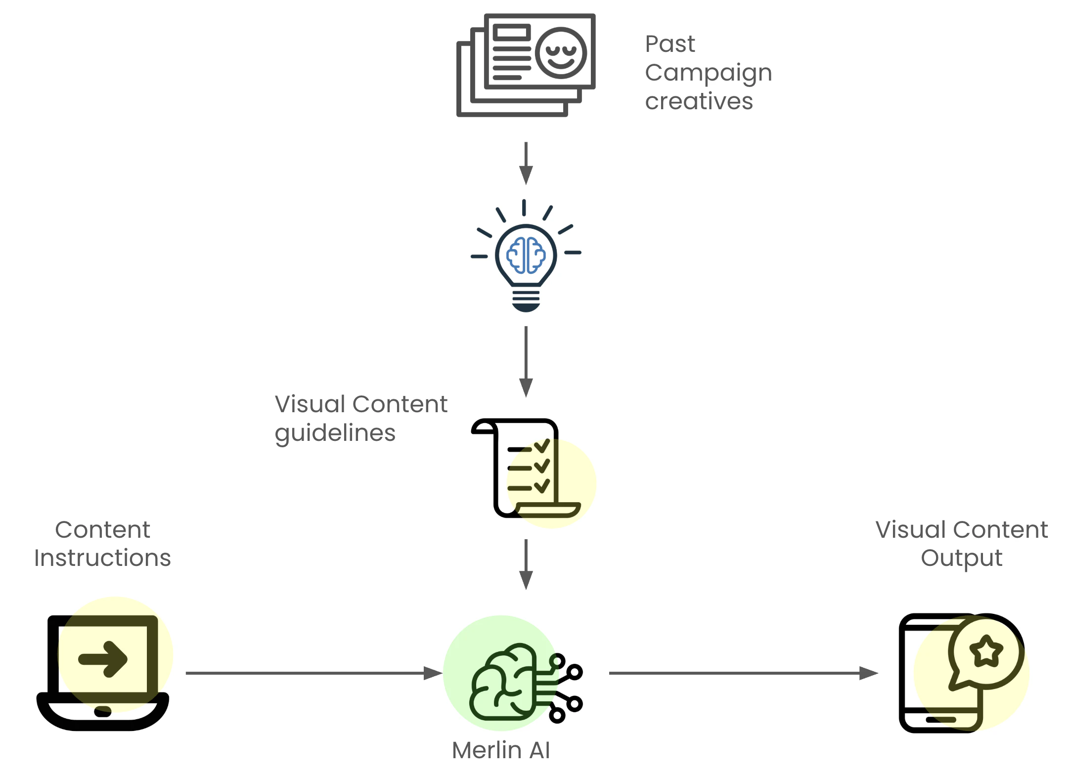 • Brand content guidelines: Merlin AI learns your unique visual identity by analyzing past campaigns. It then automatically generates new, on-brand creatives, ensuring a cohesive and recognizable brand experience across all touchpoints.