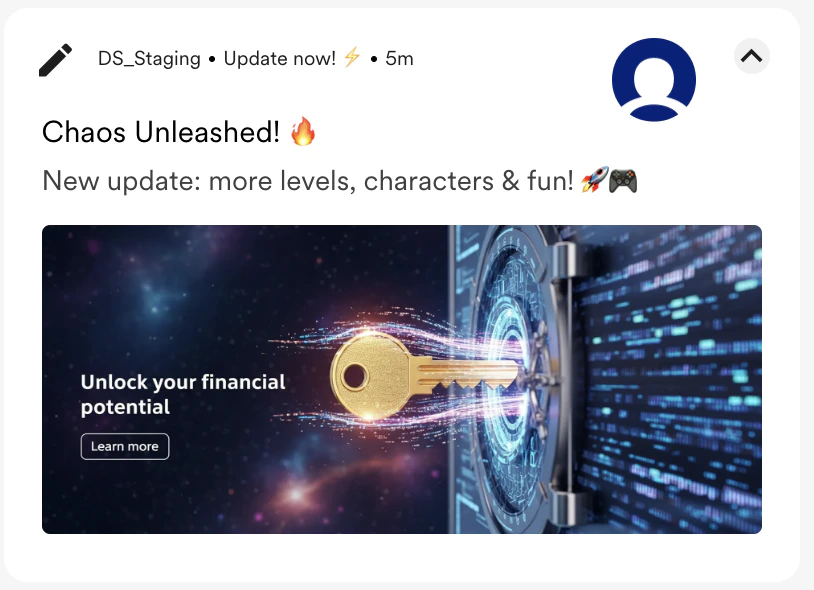 | An abstract, AI-generated image of a golden key unlocking a digital vault that releases a stream of glowing data. Add a prominent banner msg: “Unlock your financial potential,” and CTA “Learn more.” |  |