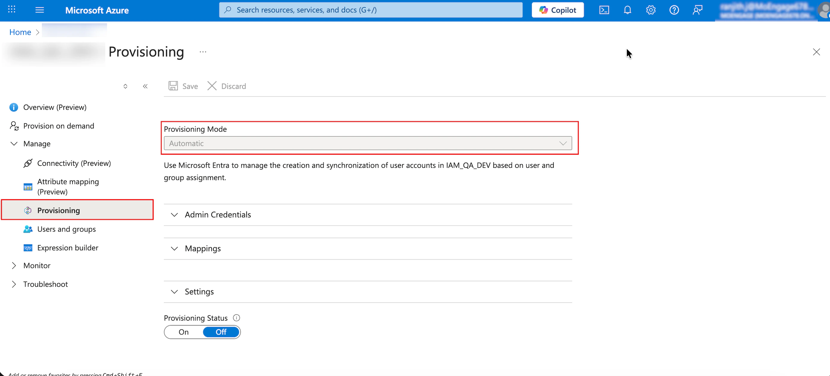 - Turn the Automate user provisioning toggle on.