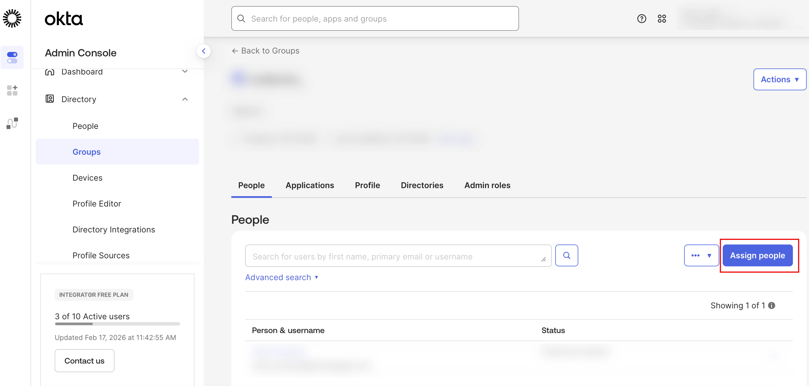 - Within the Groups page, click Assign People.