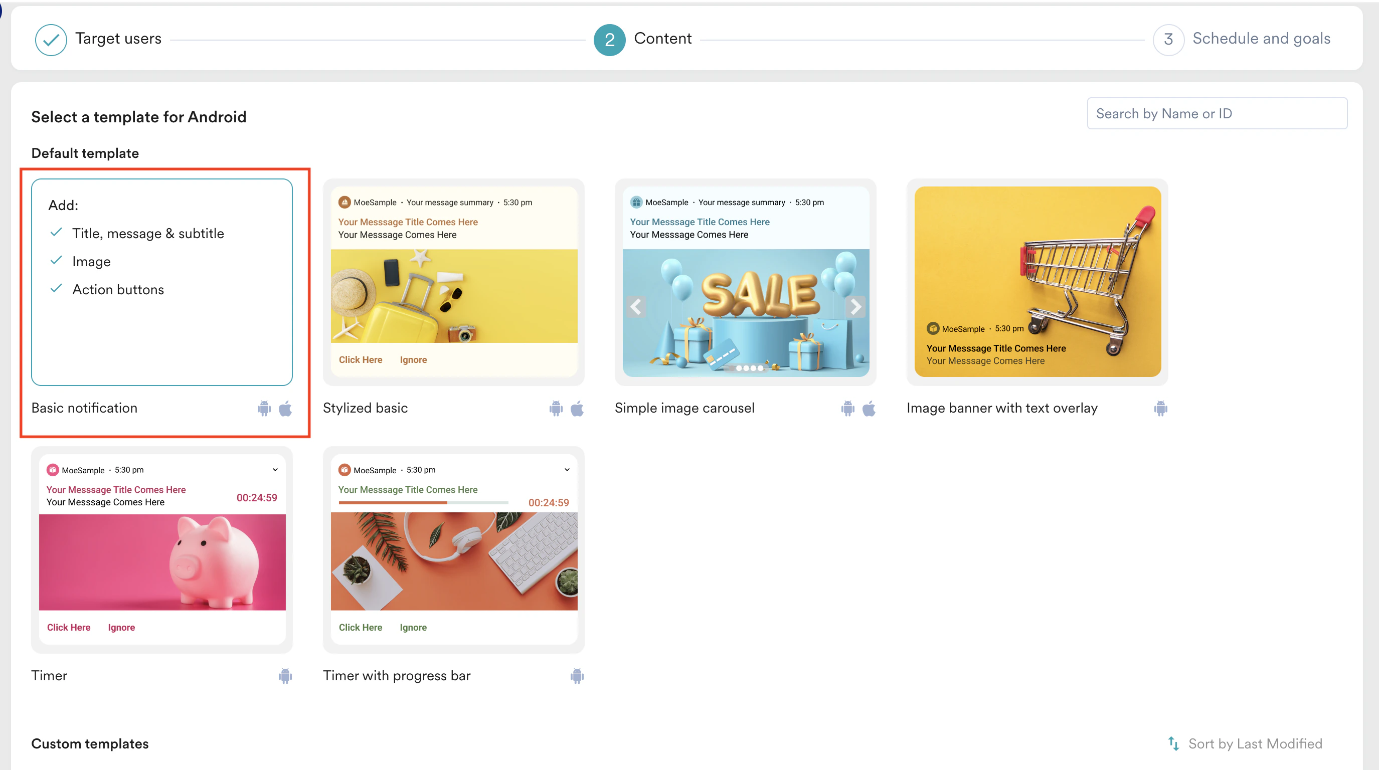 - Select the template that you would like to use. For our example, select Basic notification.